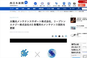 - エンバイロメント・プロダクト・カンパニー株式会社の低圧発電所42サイトの保守業務委託契約を受託